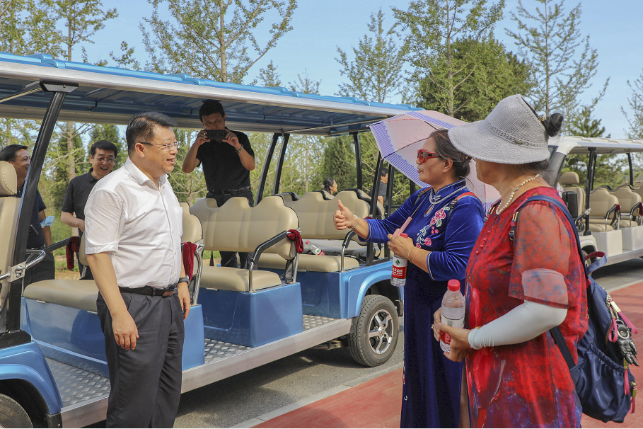 溫榆河公園朝陽公園開園儀式上。北京市政府副秘書長陳蓓、北京市水務局局長潘安君、北京市溫榆河公園協調小組成員單位相關領導在開園儀式上乘坐綠友新款14座電動觀光車。當天下午,朝陽區委書記王灝乘坐綠友觀光車到示范區進行調研,并與游客親切交談。綠友新能源售后服務人員駕駛領導專用車服務活動全程。