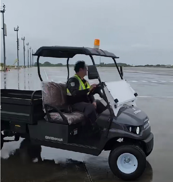 電動(dòng)工作車,在機(jī)場碼頭的風(fēng)雨中作業(yè),能滿足通過拖掛鉤連接所需要的載重貨物的需求,能幫助客戶在工作中提高效率,展示整車動(dòng)力強(qiáng)勁的特點(diǎn)。