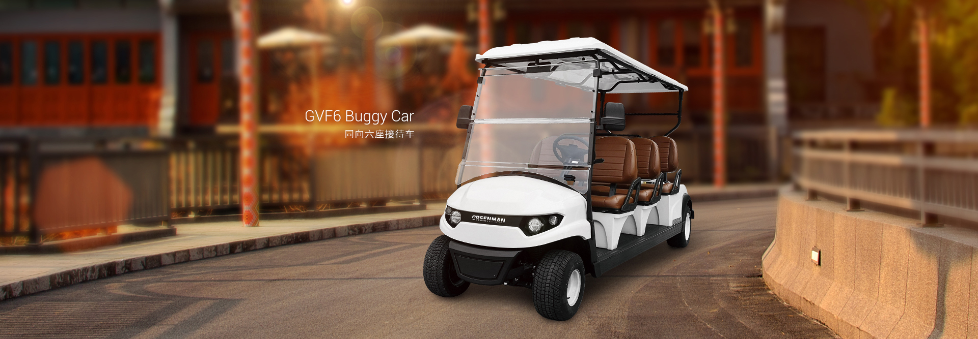 六座接待車性能穩定、操控輕便, 實用于高爾夫球場、大型游樂園、高檔酒店等。