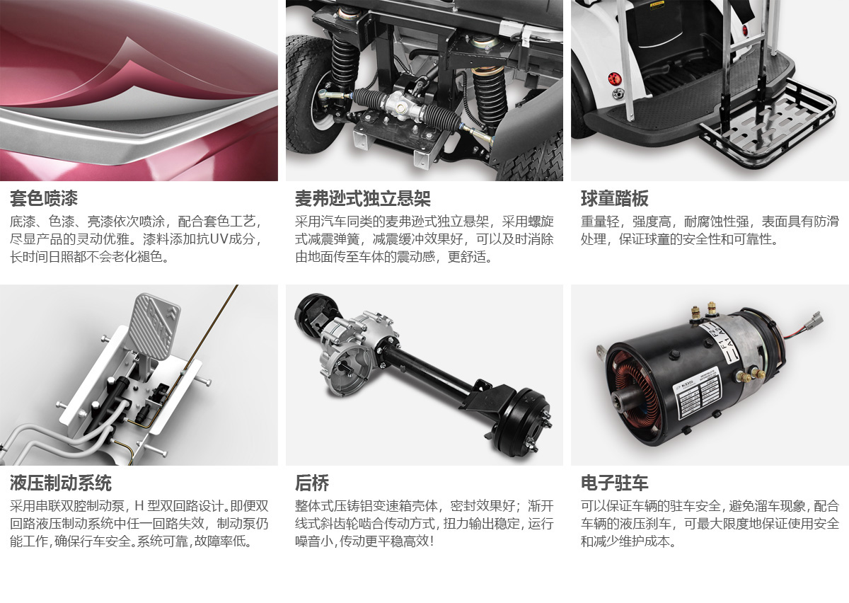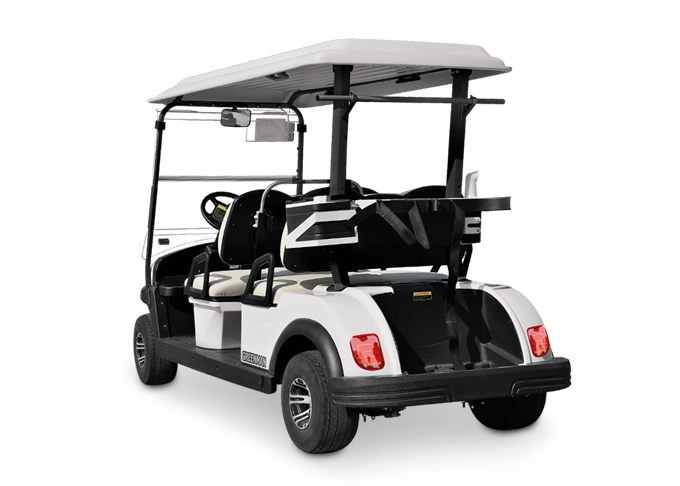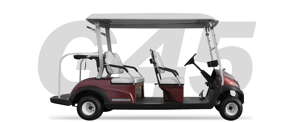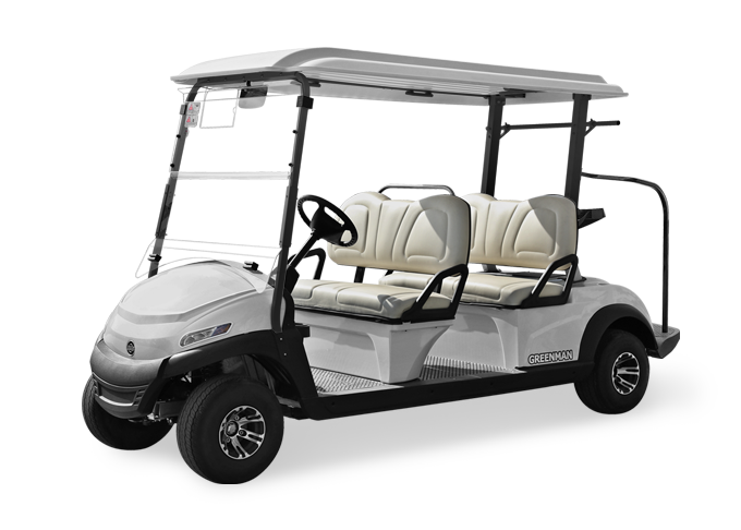 同向四座高爾夫球車,可以供4名球手和2名球童同時駕乘,也可以供3名球手和3名球童同時駕乘。 本車秉承GREENMAN 電動車一貫的優雅、高端的理念,造型美觀大方; 2500mm超大軸距、舒適的豪華座椅、充分考慮人機工程學的靠背和扶手設計,